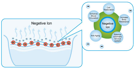 Besides that, negative ion is able to balance automatic nervous system, enhance the blood circulation, cell restoration, anti-aging and increase body resistance.