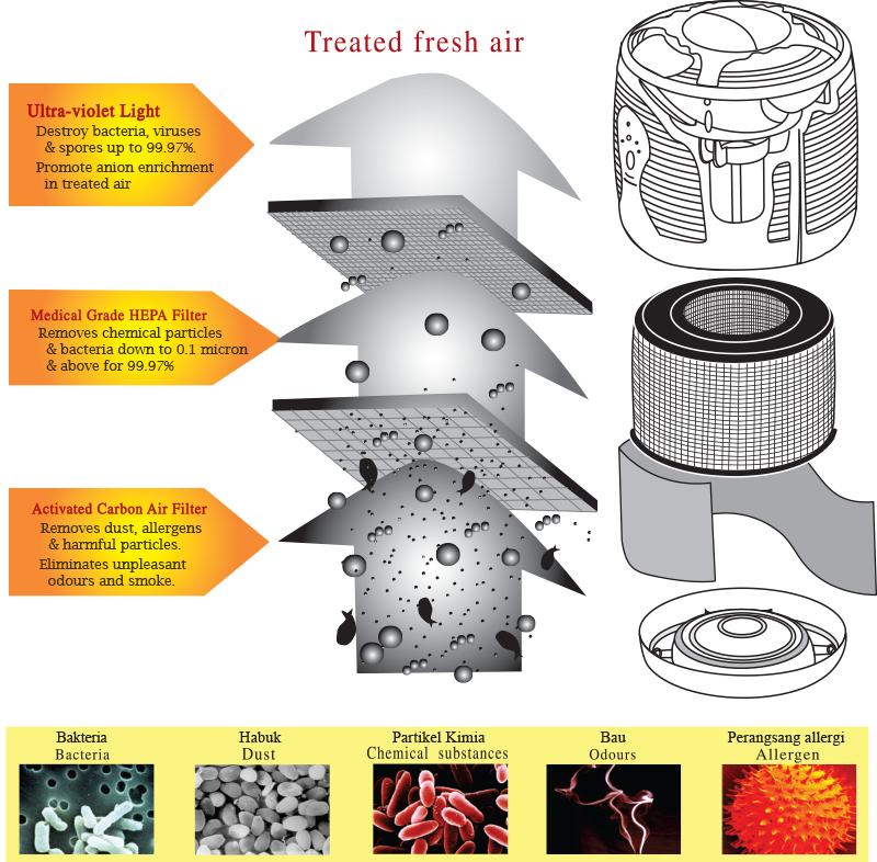Medical Grade HEPA filter down to 0.1micron
