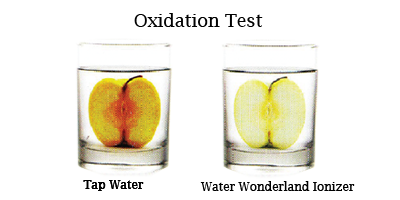 The use of new materials of platinum and titanium for the electrodes of the electrolytic tank, the core part of the reduction water appliance, extends its life span and heightens the ratio of generating hydrogen.